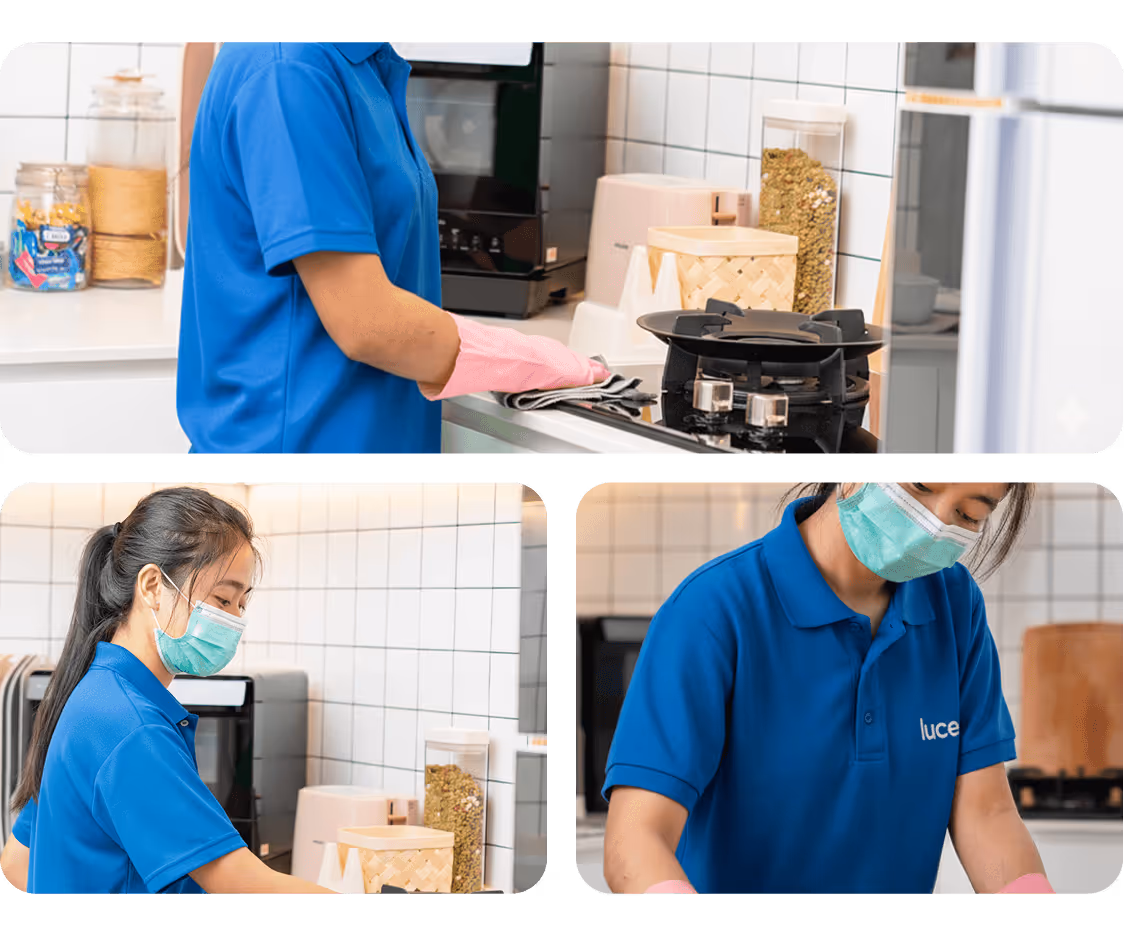 We employ local Singaporeans, PRs, and foreigners who hold a work pass. Our cleaners and service workers are hired as full-time Luce employees, so we make sure to check their legal work status with ICA before we deploy them to take on jobs.